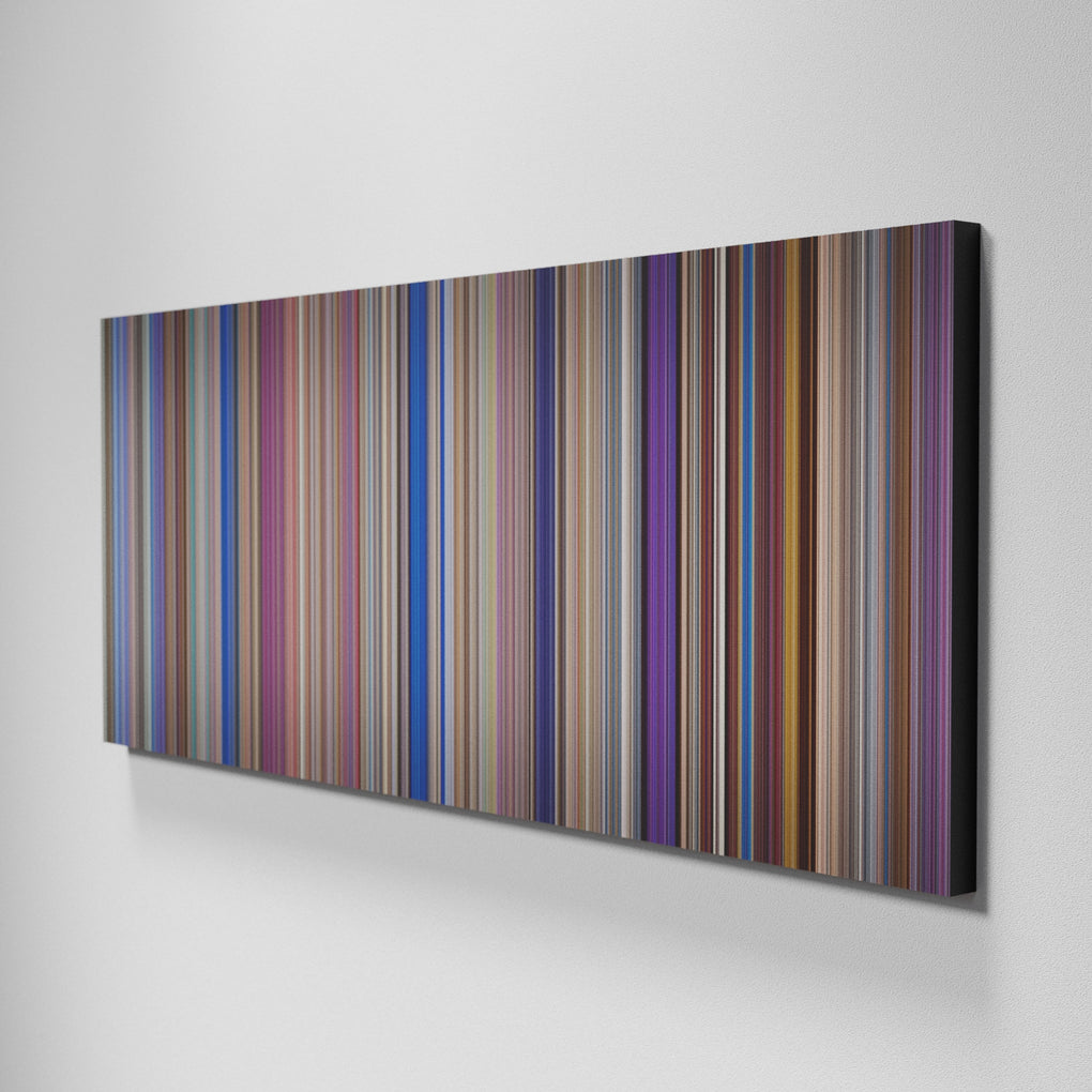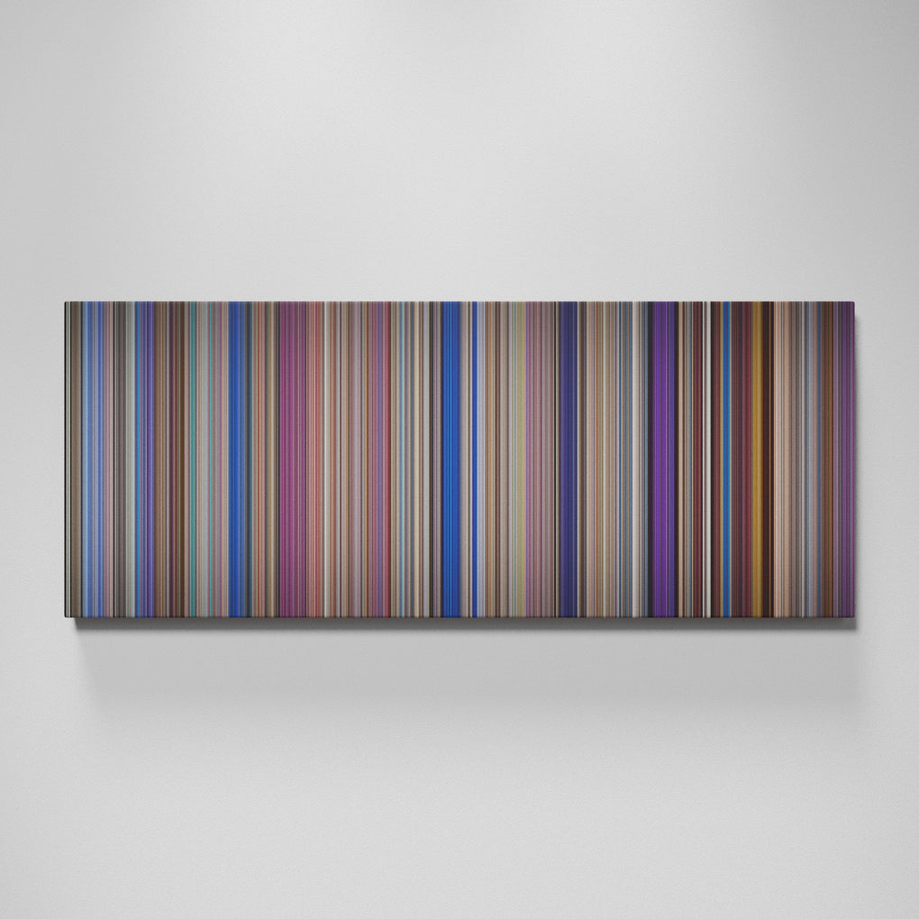 Presenting the ultimate treat for lovers of movies. For the first time ever, we’ve mapped out on canvas the entire DNA from start to finish. Every vertical stripe represents a scene with the color taken as the average of all the frames within that scene.