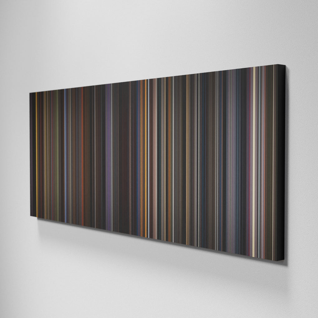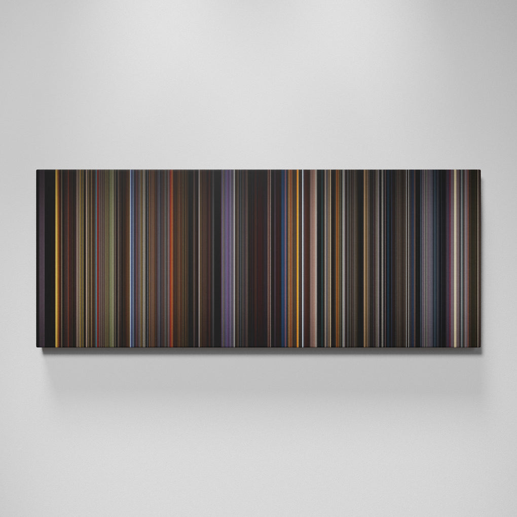 Presenting the ultimate treat for lovers of movies. For the first time ever, we’ve mapped out on canvas the entire DNA from start to finish. Every vertical stripe represents a scene with the color taken as the average of all the frames within that scene.