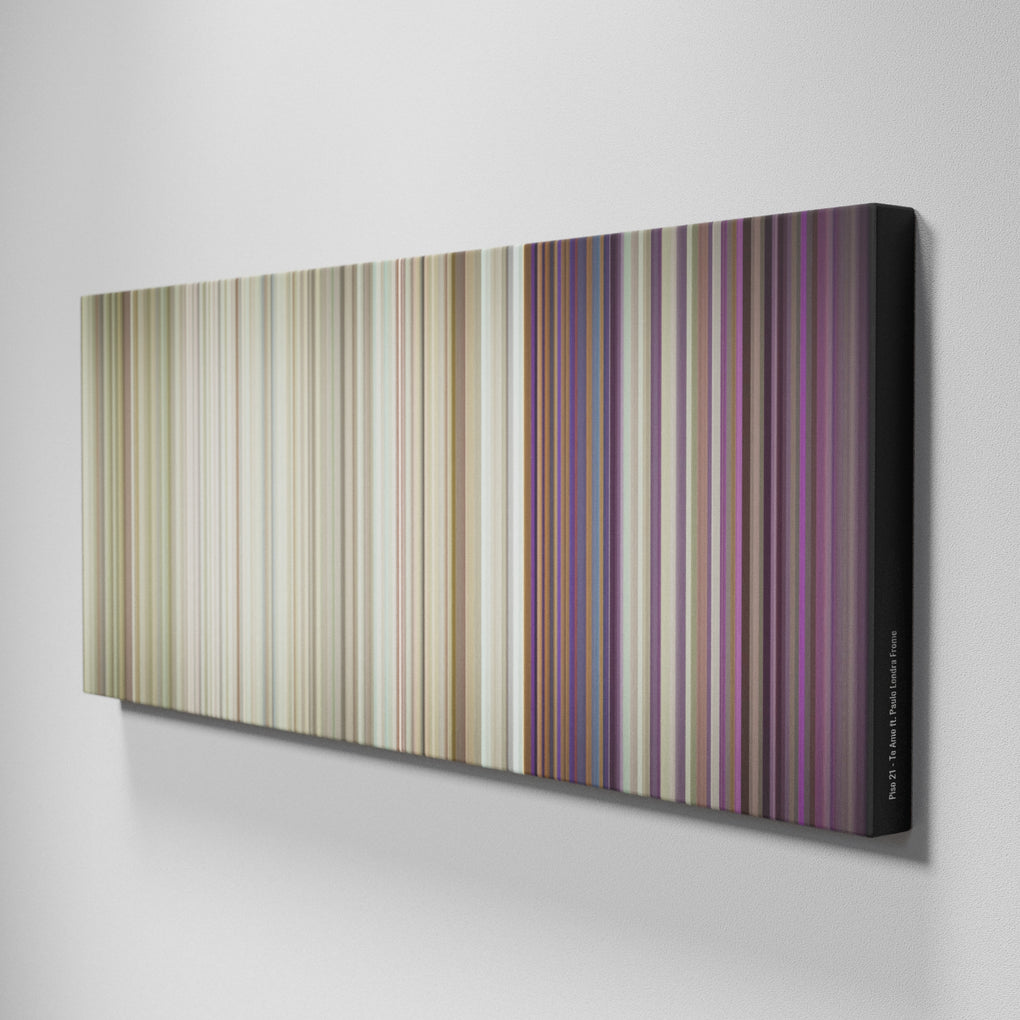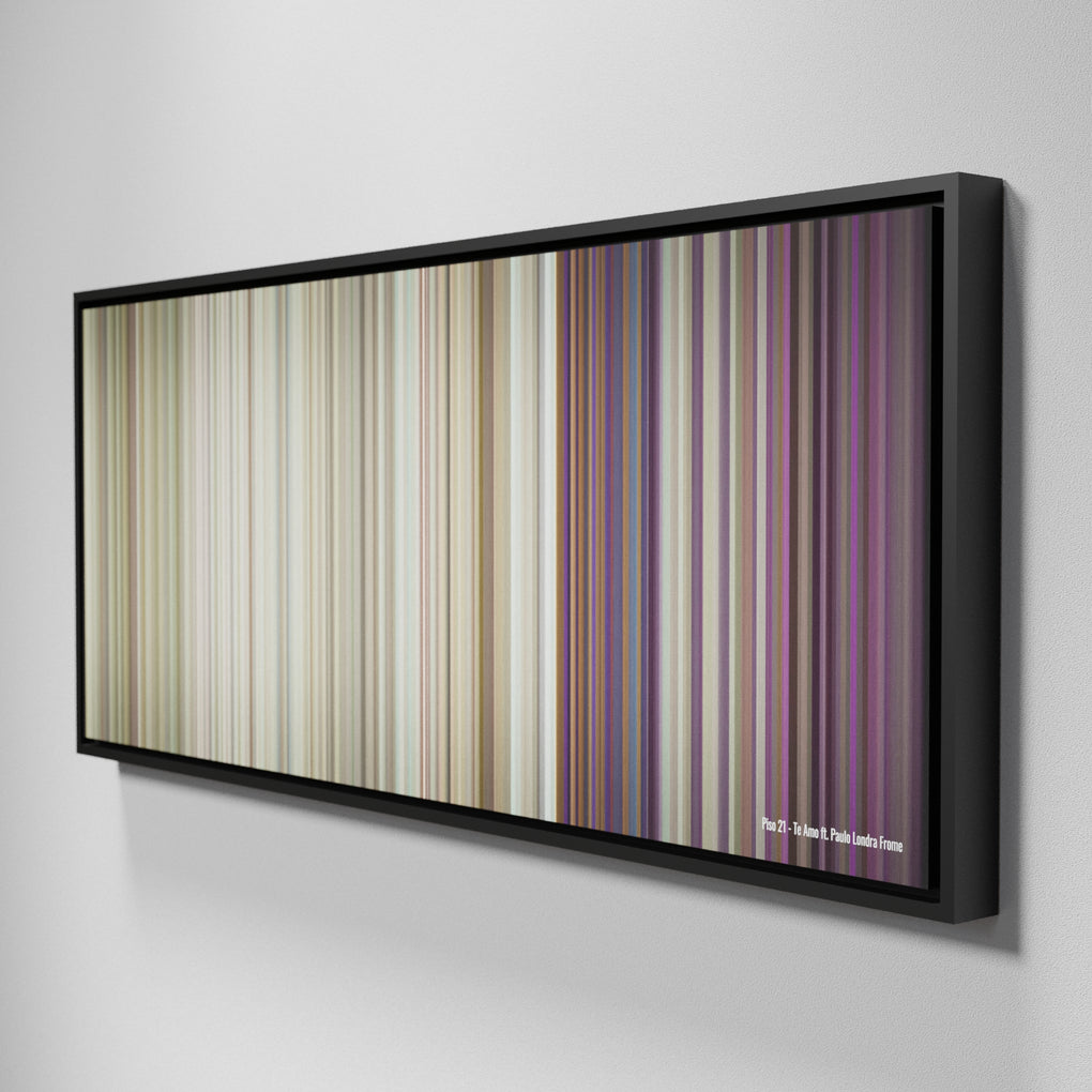 Presenting the ultimate treat for lovers of the Piso 21 - Te Amo ft. Paulo Londra song. For the first time ever, we've mapped out the entire DNA of the Piso 21 - Te Amo ft. Paulo Londra musical clip on canvas from start to finish. Every vertical stripe represents a scene from Piso 21 - Te Amo ft. Paulo Londra video, with the color taken as the average of all the frames within that scene.