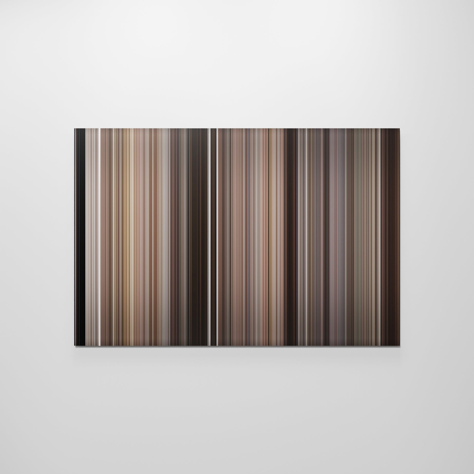 Presenting the ultimate treat for lovers of movies. For the first time ever, we’ve mapped out on canvas the entire DNA from start to finish. Every vertical stripe represents a scene with the color taken as the average of all the frames within that scene.