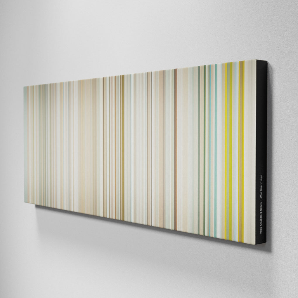 Presenting the ultimate treat for lovers of the Rauw Alejandro & Camilo - Tattoo Remix song. For the first time ever, we've mapped out the entire DNA of the Rauw Alejandro & Camilo - Tattoo Remix musical clip on canvas from start to finish. Every vertical stripe represents a scene from Rauw Alejandro & Camilo - Tattoo Remix video, with the color taken as the average of all the frames within that scene.