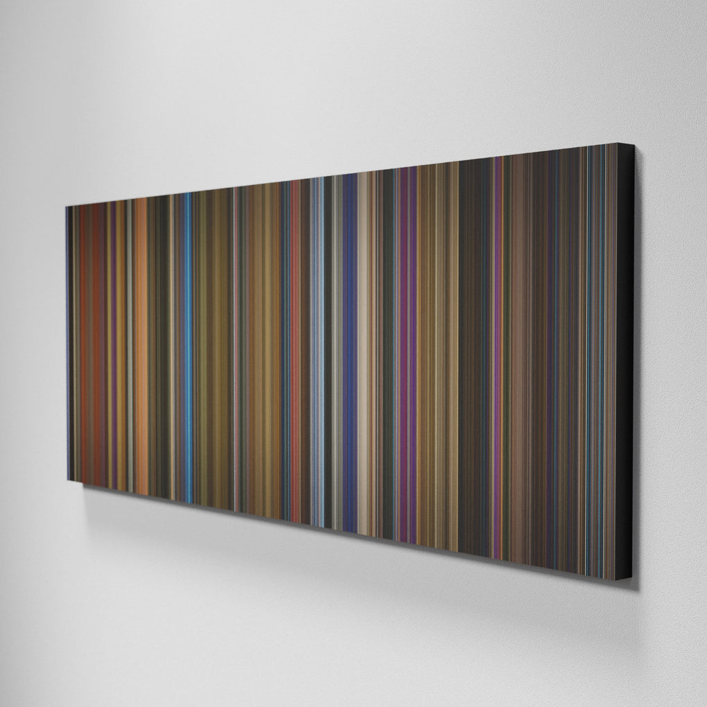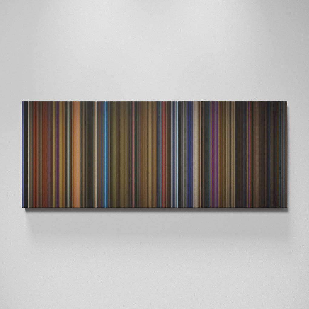 Presenting the ultimate treat for lovers of movies. For the first time ever, we’ve mapped out on canvas the entire DNA from start to finish. Every vertical stripe represents a scene with the color taken as the average of all the frames within that scene.