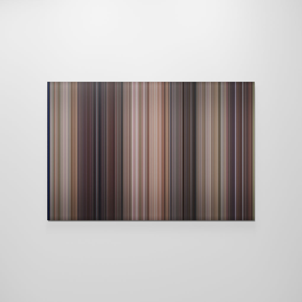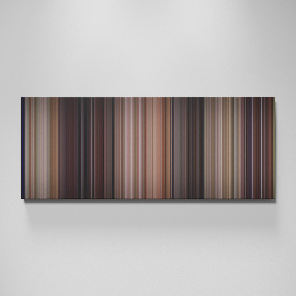 Presenting the ultimate treat for lovers of movies. For the first time ever, we’ve mapped out on canvas the entire DNA from start to finish. Every vertical stripe represents a scene with the color taken as the average of all the frames within that scene.
