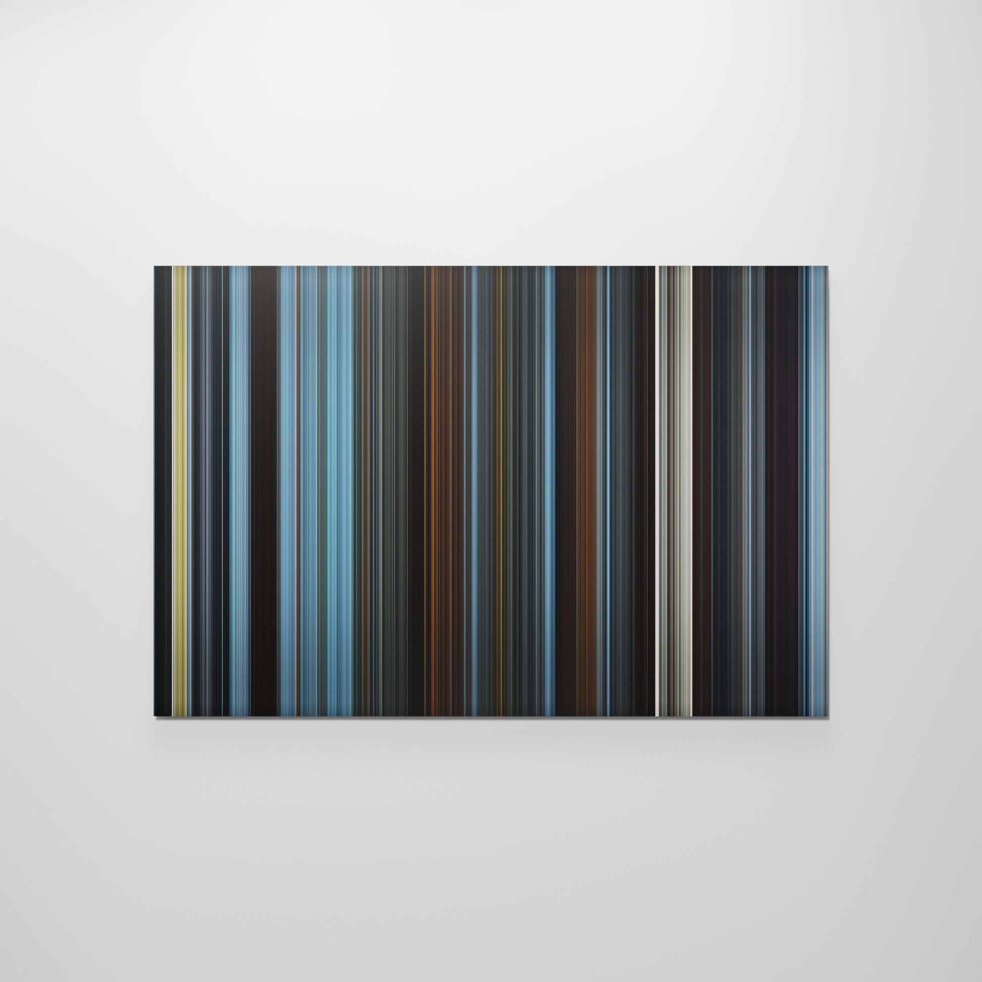 Presenting the ultimate treat for lovers of the movie Silent Hill. For the first time ever, we've mapped out on canvas the entire DNA of the film from start to finish. Every vertical stripe represents a scene from Silent Hill, with the color taken as the average of all the frames within that scene. When you take a step back, the overall impact is truly stunning! Cinema fans get a permanent reminder of this iconic film, which can be read again and again, just like a book. If you're looking for a truly unique piece of home decor packed with sentimental value, why not try Frome movie art?