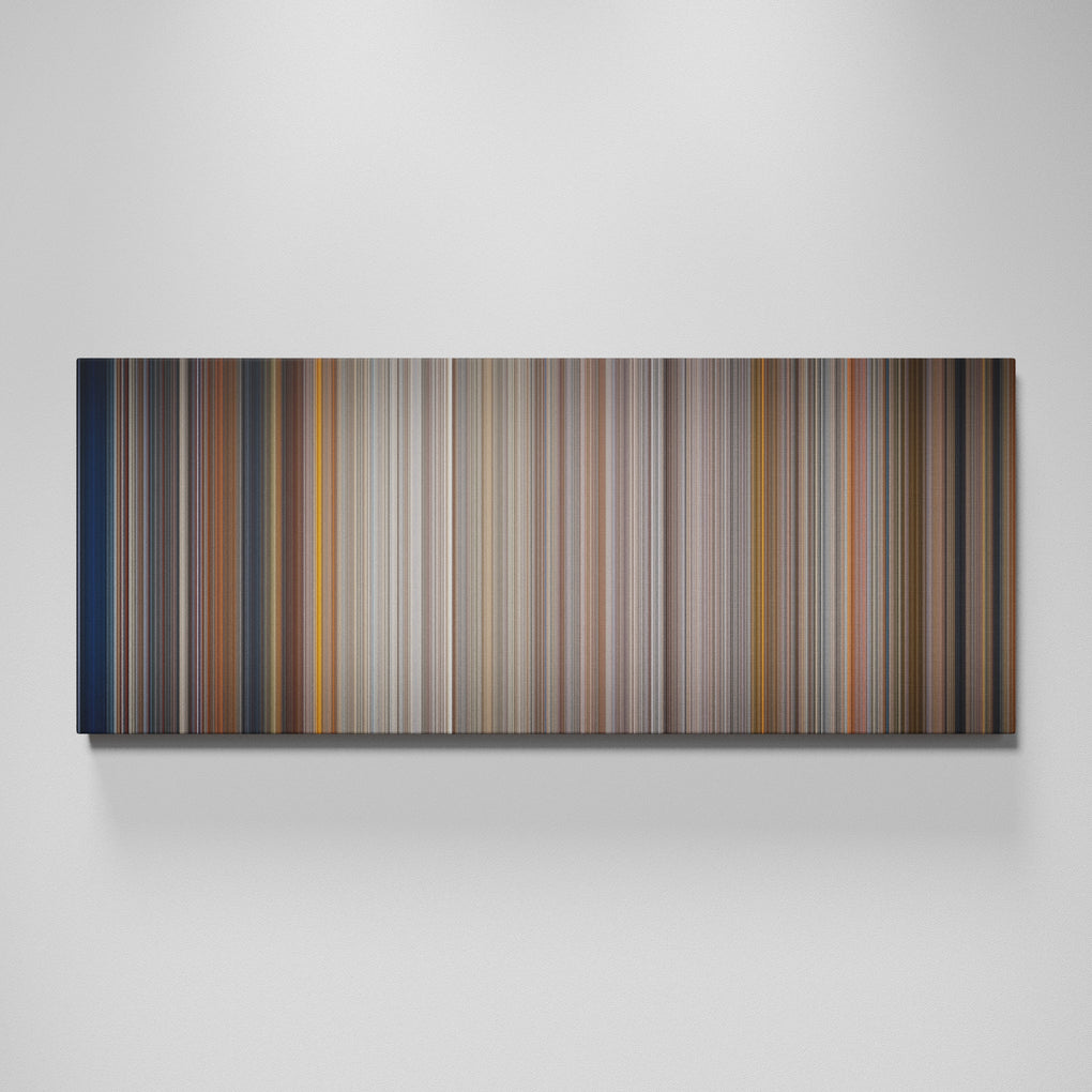 Presenting the ultimate treat for lovers of movies. For the first time ever, we’ve mapped out on canvas the entire DNA from start to finish. Every vertical stripe represents a scene with the color taken as the average of all the frames within that scene.