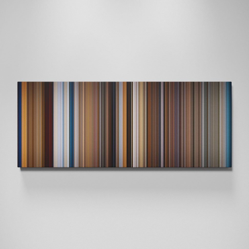 Presenting the ultimate treat for lovers of movies. For the first time ever, we’ve mapped out on canvas the entire DNA from start to finish. Every vertical stripe represents a scene with the color taken as the average of all the frames within that scene.