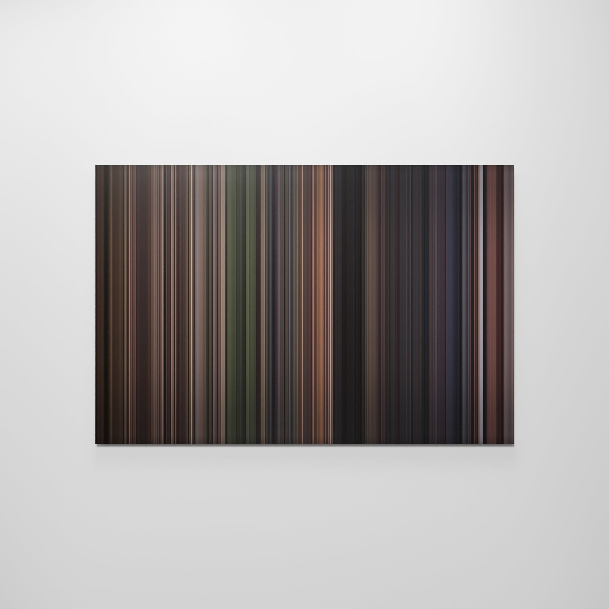 Presenting the ultimate treat for lovers of the movie Stalker. For the first time ever, we've mapped out on canvas the entire DNA of the film from start to finish. Every vertical stripe represents a scene from Stalker, with the color taken as the average of all the frames within that scene. When you take a step back, the overall impact is truly stunning! Cinema fans get a permanent reminder of this iconic film, which can be read again and again, just like a book. If you're looking for a truly unique piece of home decor packed with sentimental value, why not try Frome movie art?