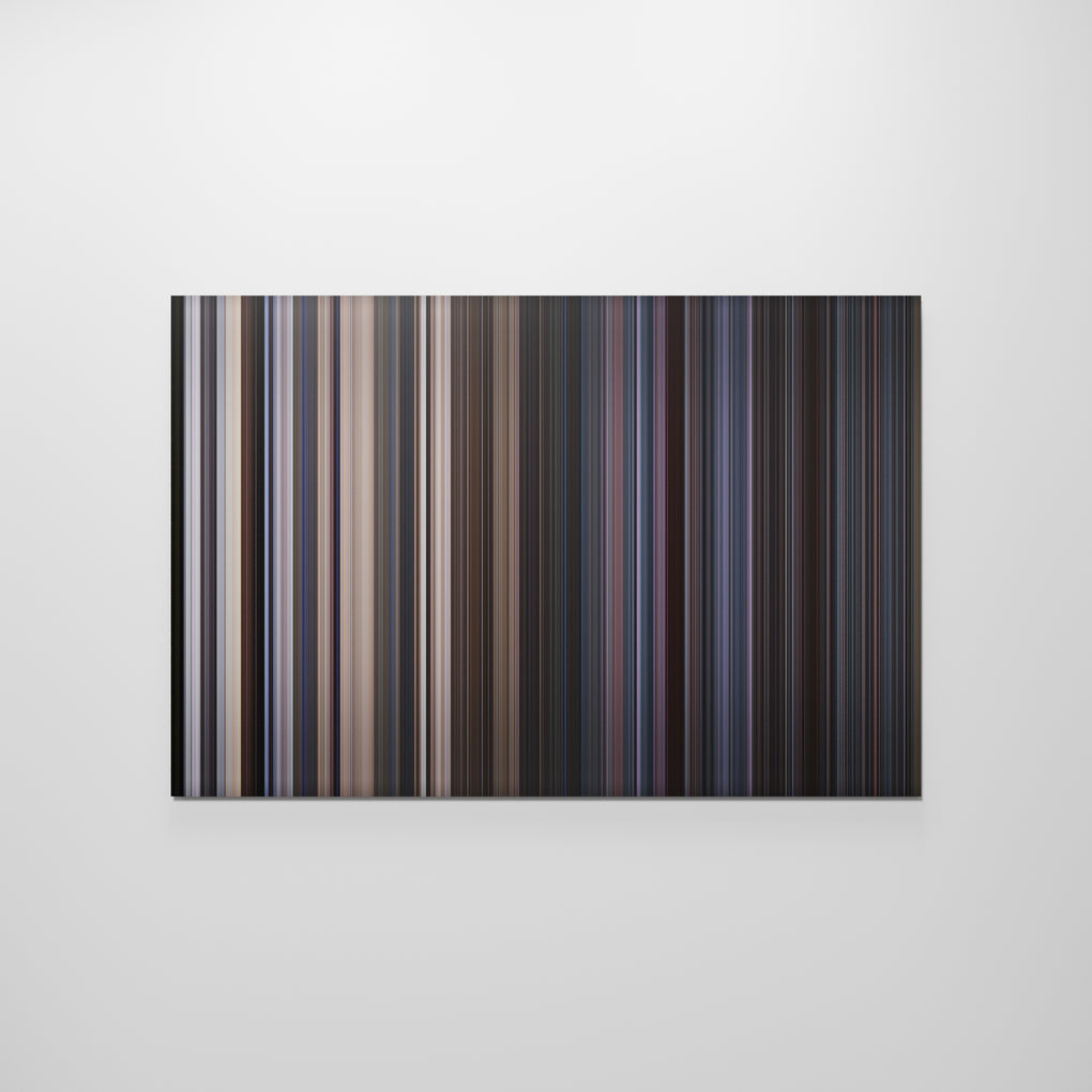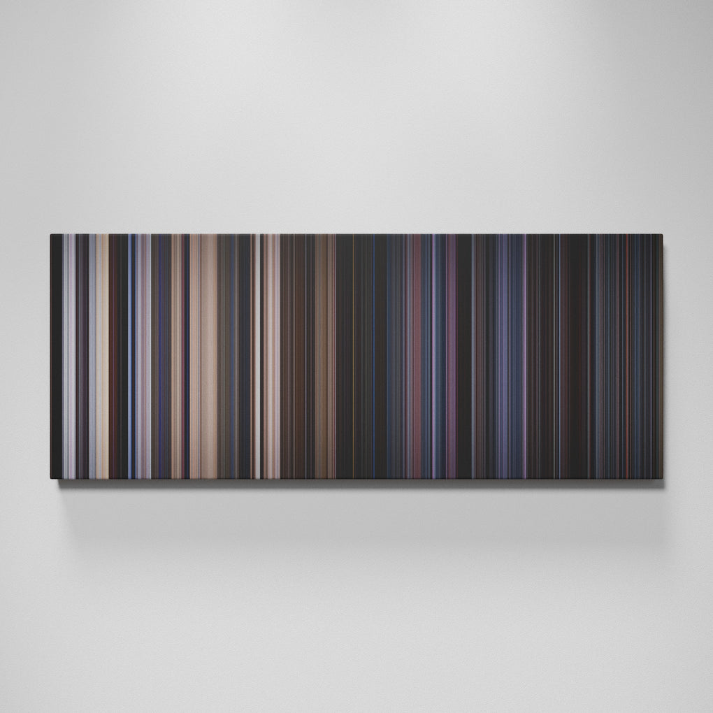 Presenting the ultimate treat for lovers of movies. For the first time ever, we’ve mapped out on canvas the entire DNA from start to finish. Every vertical stripe represents a scene with the color taken as the average of all the frames within that scene.