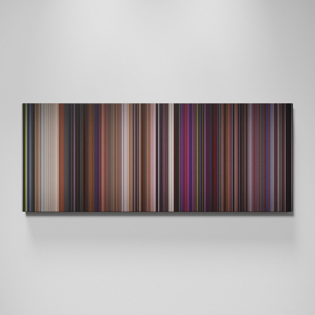 Presenting the ultimate treat for lovers of movies. For the first time ever, we’ve mapped out on canvas the entire DNA from start to finish. Every vertical stripe represents a scene with the color taken as the average of all the frames within that scene.