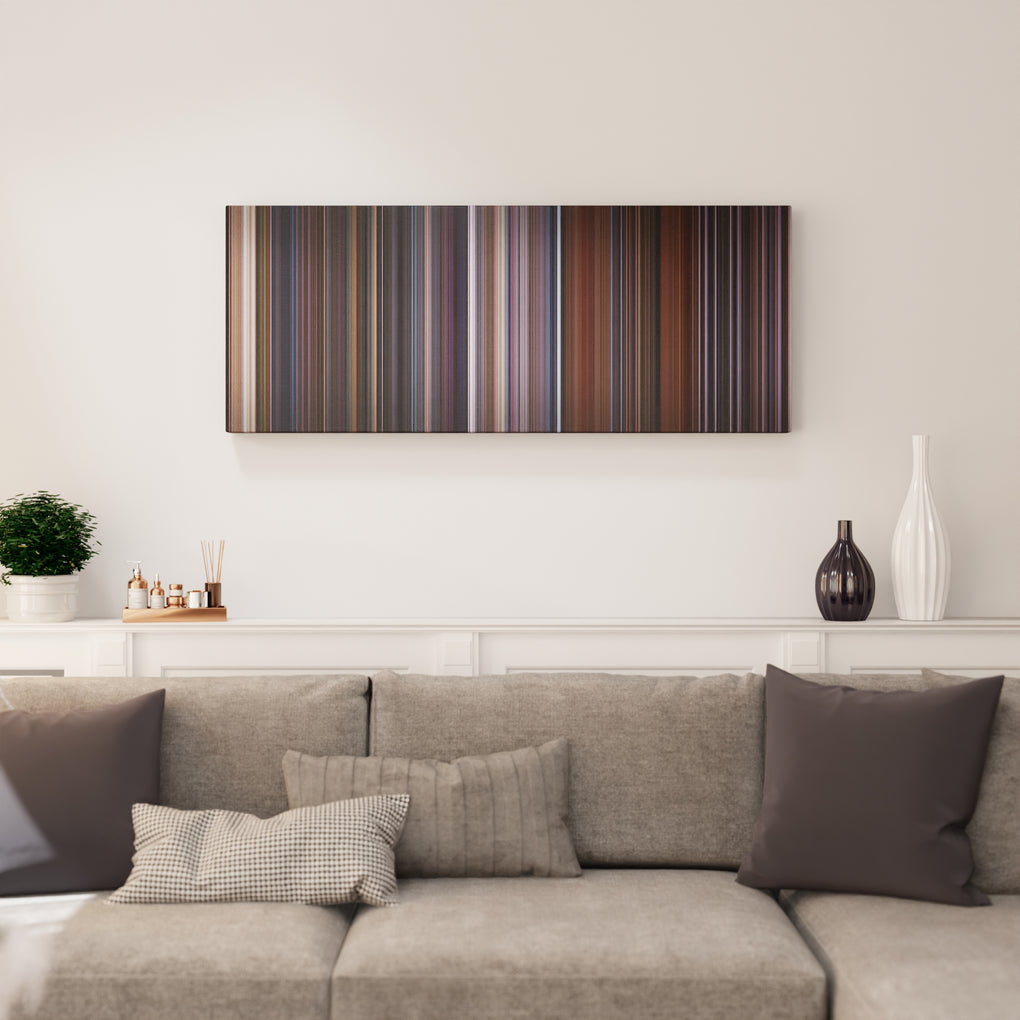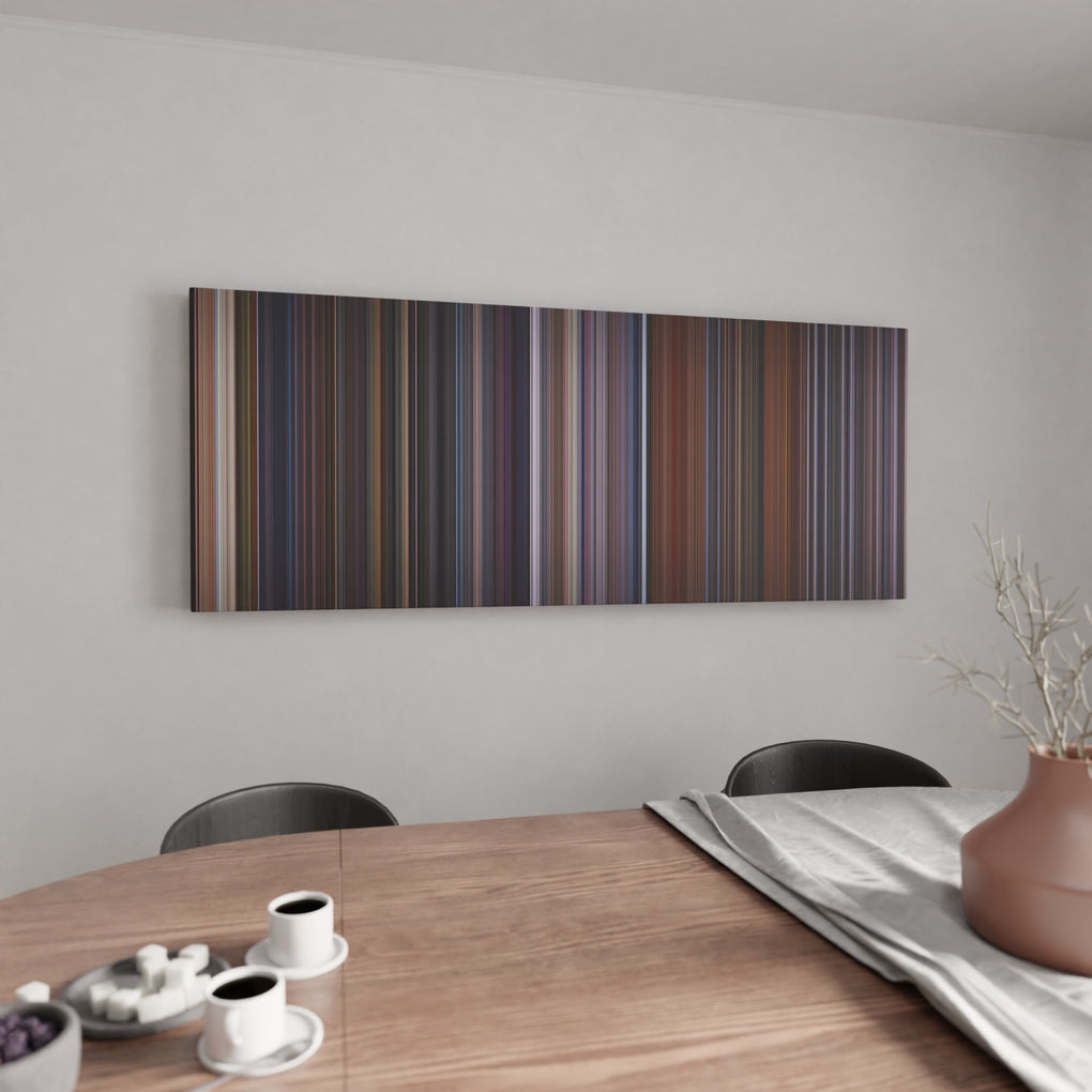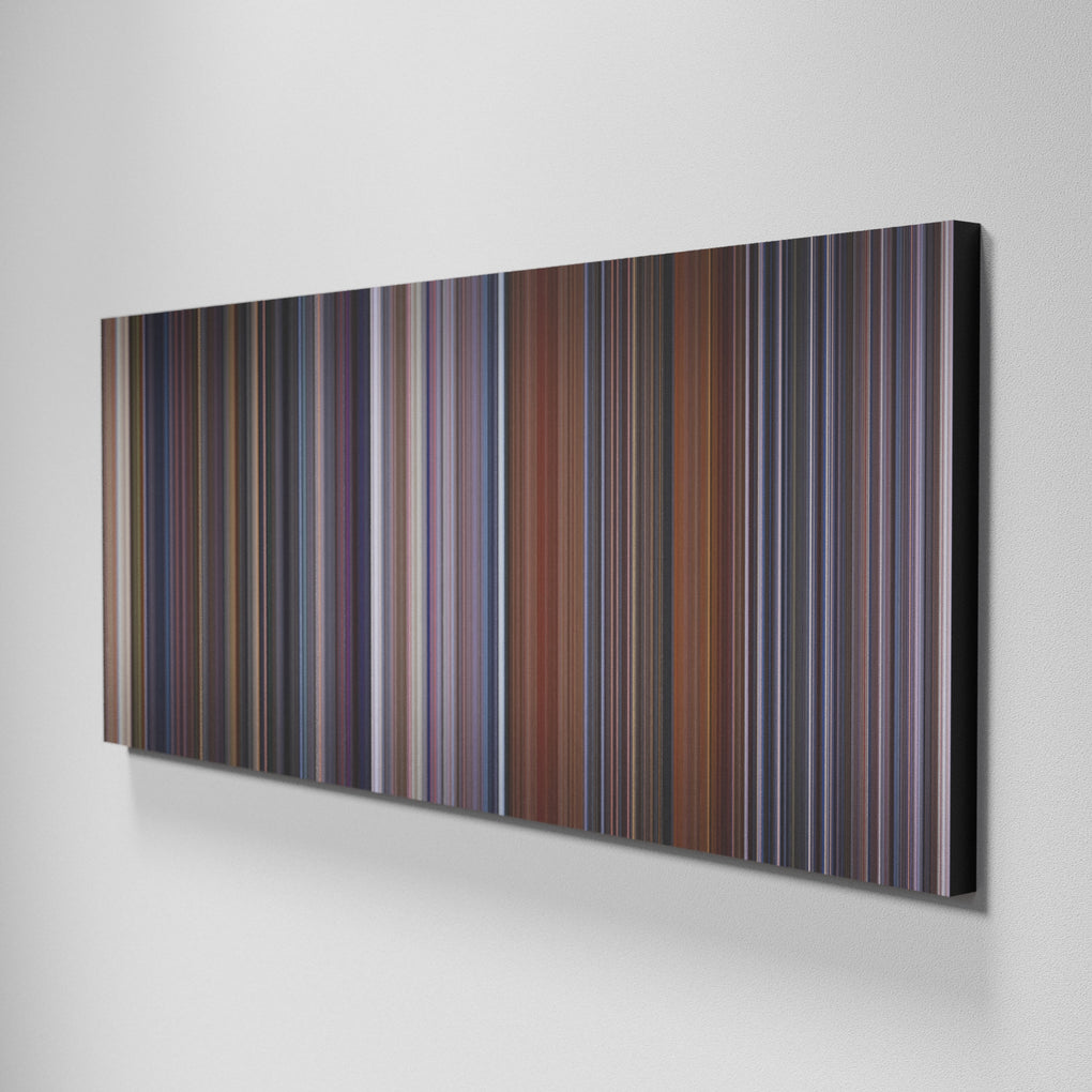 Presenting the ultimate treat for lovers of movies. For the first time ever, we’ve mapped out on canvas the entire DNA from start to finish. Every vertical stripe represents a scene with the color taken as the average of all the frames within that scene.