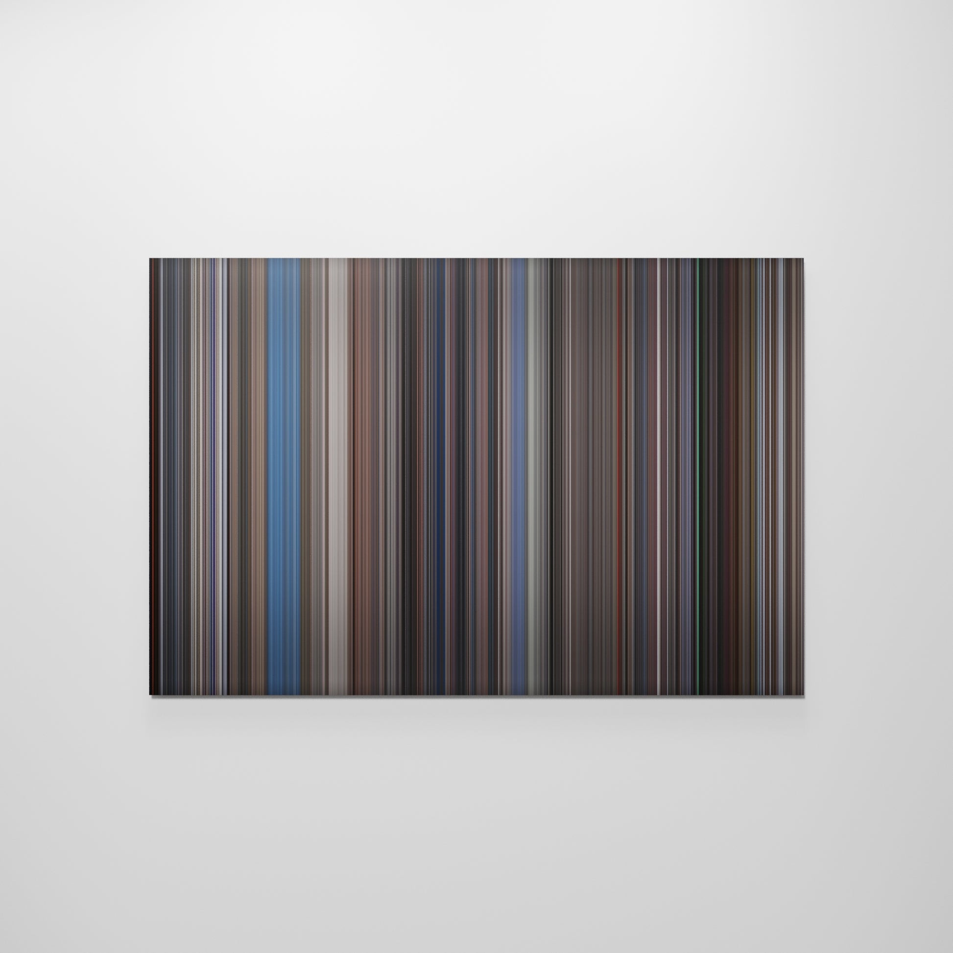 Presenting the ultimate treat for lovers of movies. For the first time ever, we’ve mapped out on canvas the entire DNA from start to finish. Every vertical stripe represents a scene with the color taken as the average of all the frames within that scene.