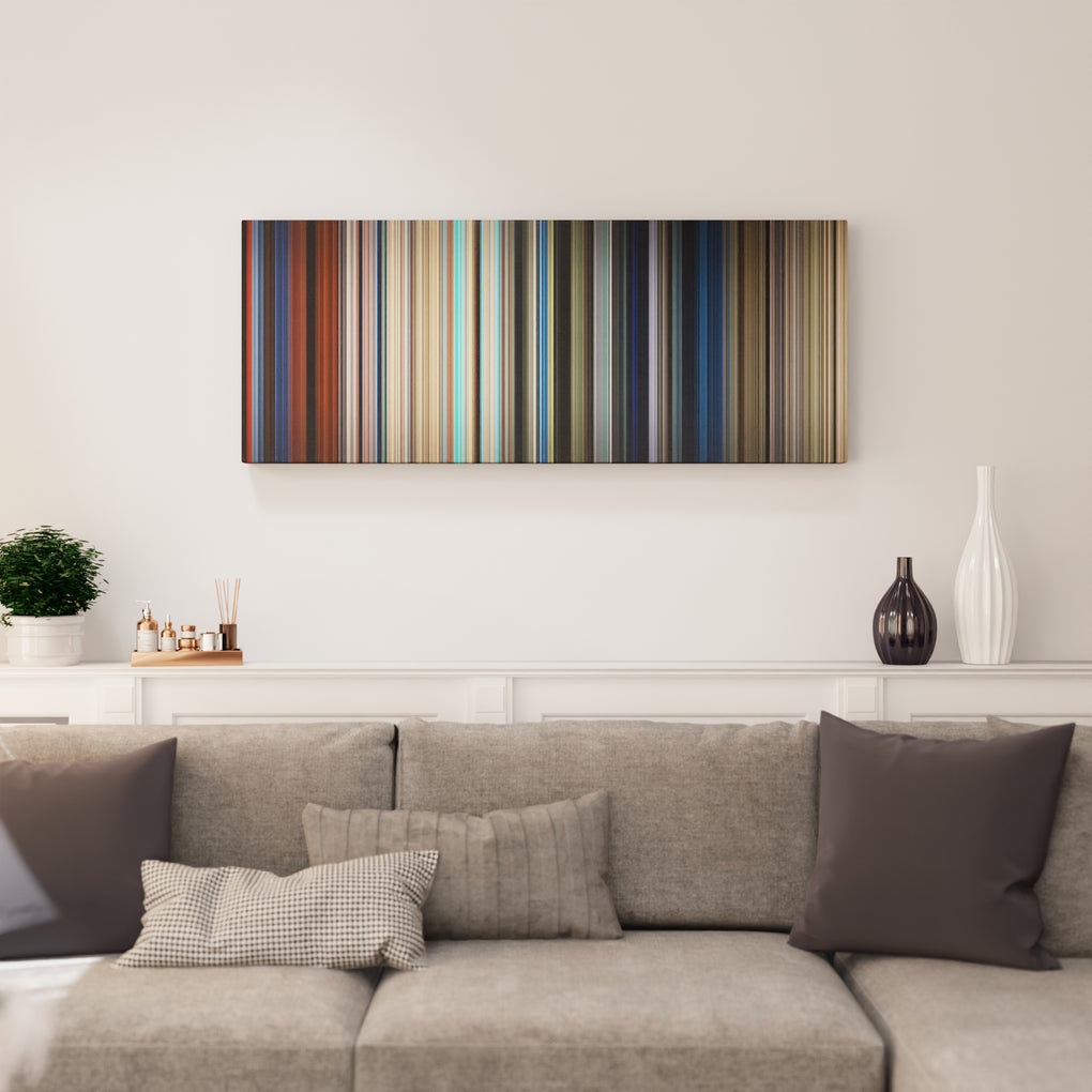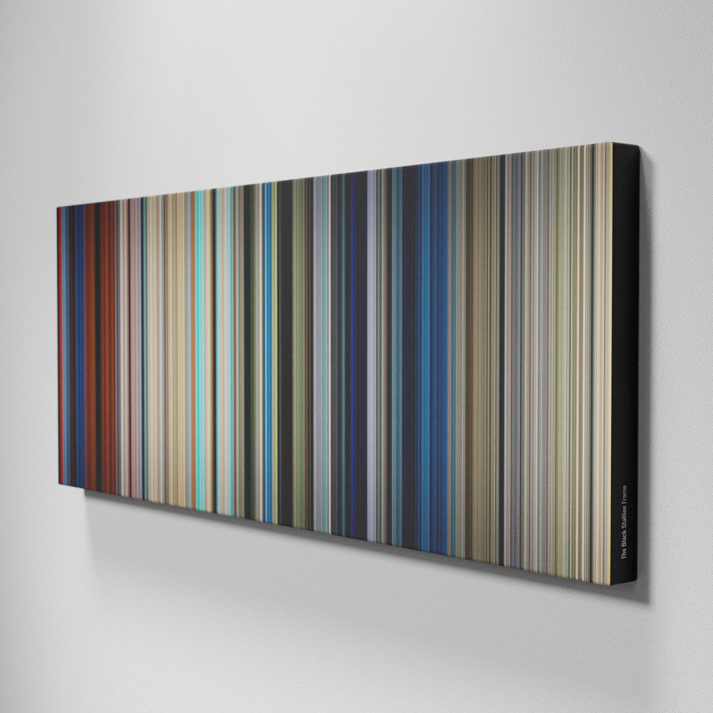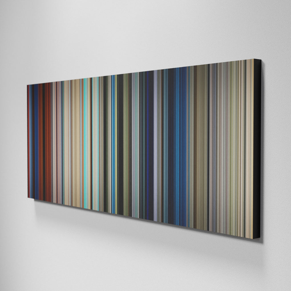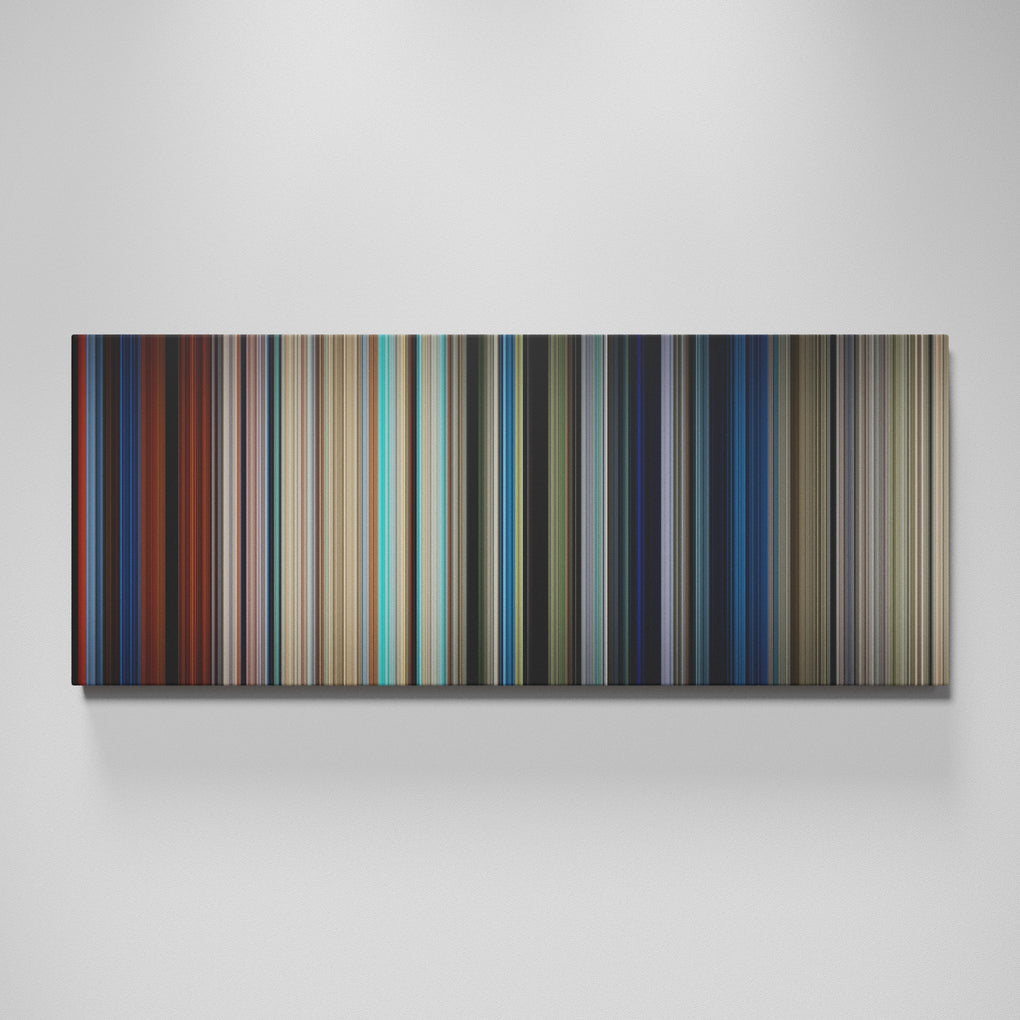 Presenting the ultimate treat for lovers of movies. For the first time ever, we’ve mapped out on canvas the entire DNA from start to finish. Every vertical stripe represents a scene with the color taken as the average of all the frames within that scene.