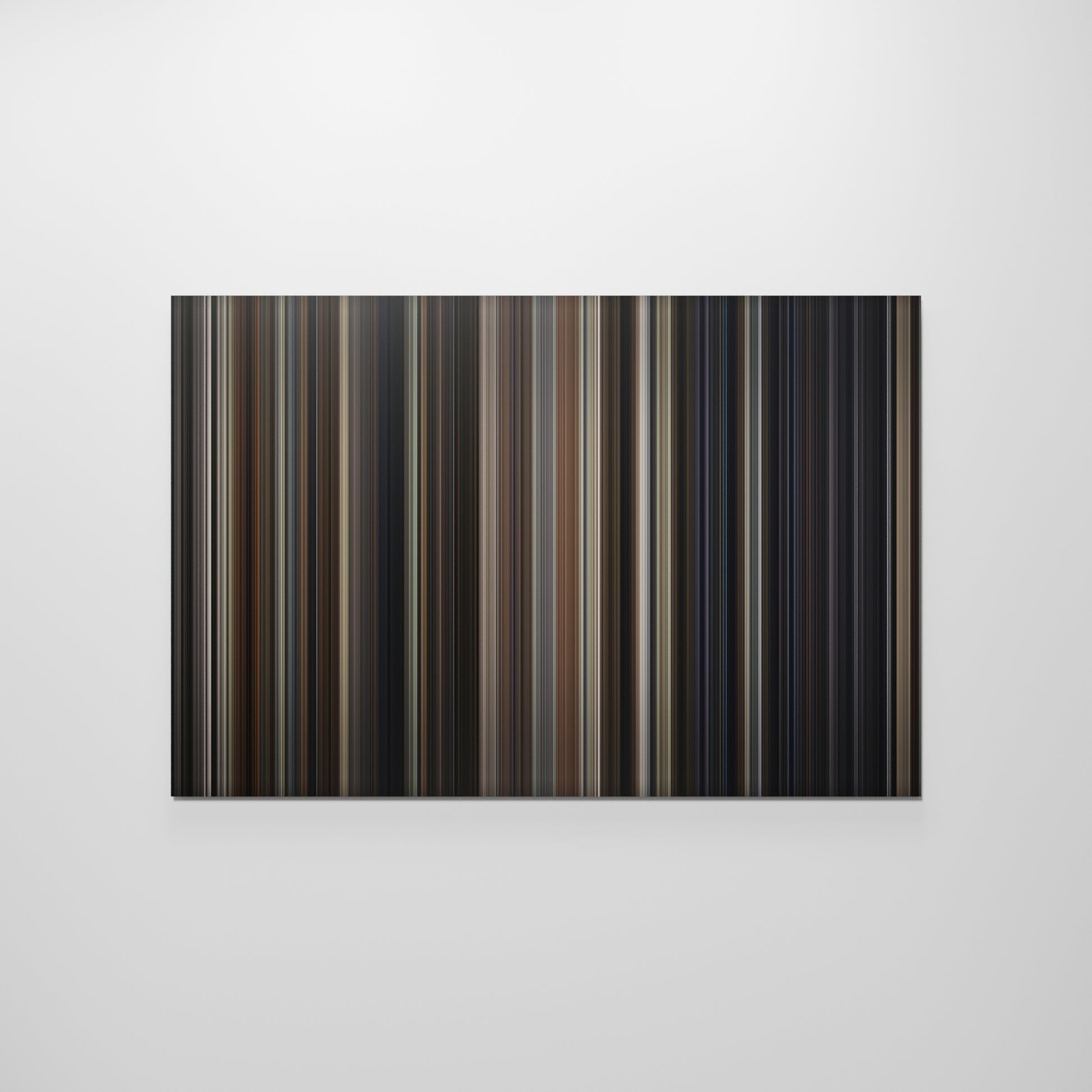 Presenting the ultimate treat for lovers of the movie The Conjuring. For the first time ever, we've mapped out on canvas the entire DNA of the film from start to finish. Every vertical stripe represents a scene from The Conjuring, with the color taken as the average of all the frames within that scene. When you take a step back, the overall impact is truly stunning! Cinema fans get a permanent reminder of this iconic film, which can be read again and again, just like a book. If you're looking for a truly unique piece of home decor packed with sentimental value, why not try Frome movie art?