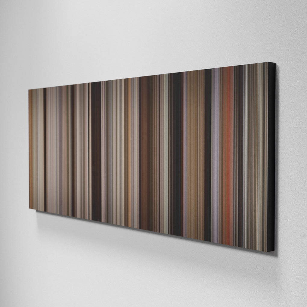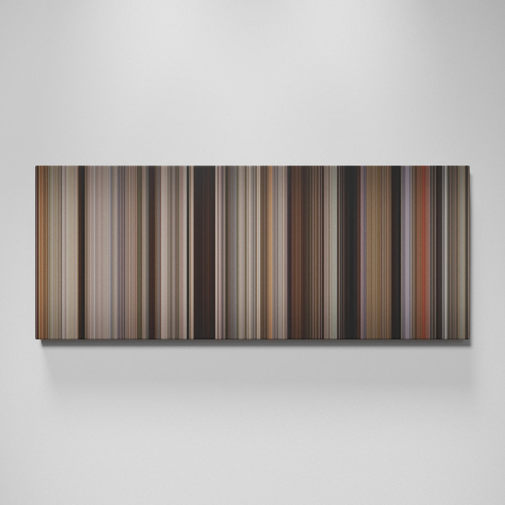 Presenting the ultimate treat for lovers of movies. For the first time ever, we’ve mapped out on canvas the entire DNA from start to finish. Every vertical stripe represents a scene with the color taken as the average of all the frames within that scene.