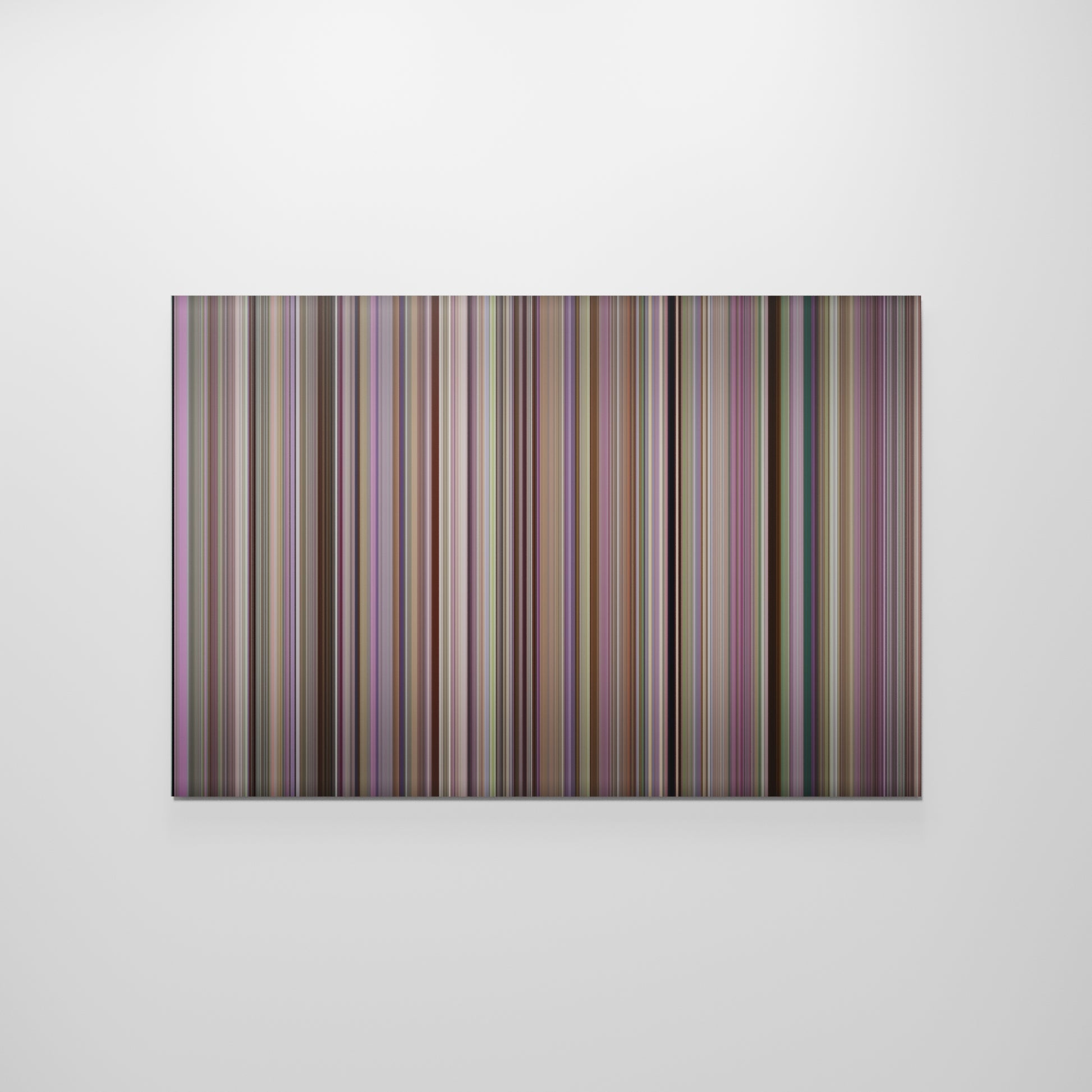 Presenting the ultimate treat for lovers of the movie The Florida Project. For the first time ever, we've mapped out on canvas the entire DNA of the film from start to finish. Every vertical stripe represents a scene from The Florida Project, with the color taken as the average of all the frames within that scene. When you take a step back, the overall impact is truly stunning! Cinema fans get a permanent reminder of this iconic film, which can be read again and again, just like a book. If you're looking for a truly unique piece of home decor packed with sentimental value, why not try Frome movie art?