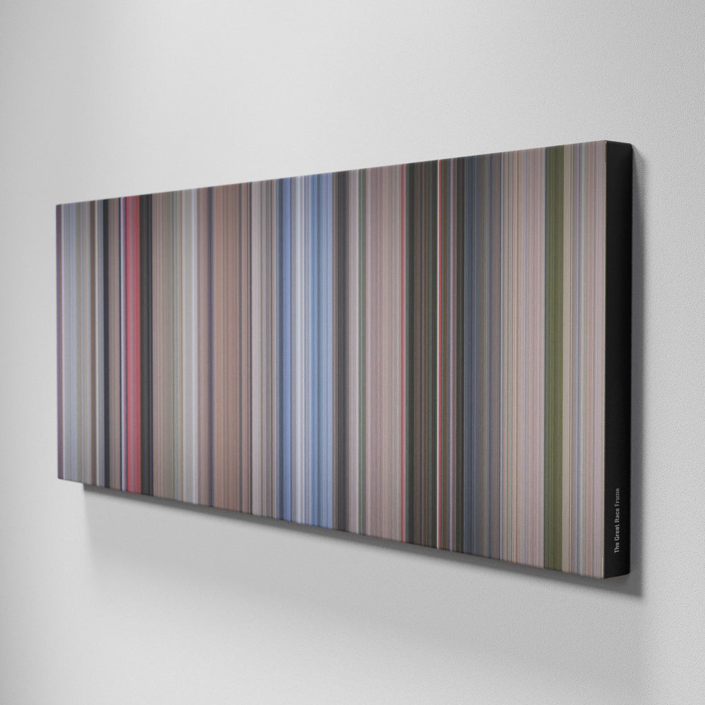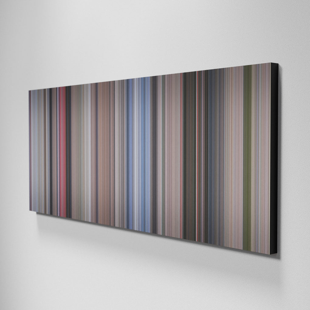 Presenting the ultimate treat for lovers of movies. For the first time ever, we’ve mapped out on canvas the entire DNA from start to finish. Every vertical stripe represents a scene with the color taken as the average of all the frames within that scene.