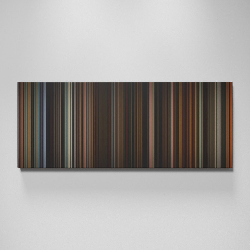 Presenting the ultimate treat for lovers of movies. For the first time ever, we’ve mapped out on canvas the entire DNA from start to finish. Every vertical stripe represents a scene with the color taken as the average of all the frames within that scene.