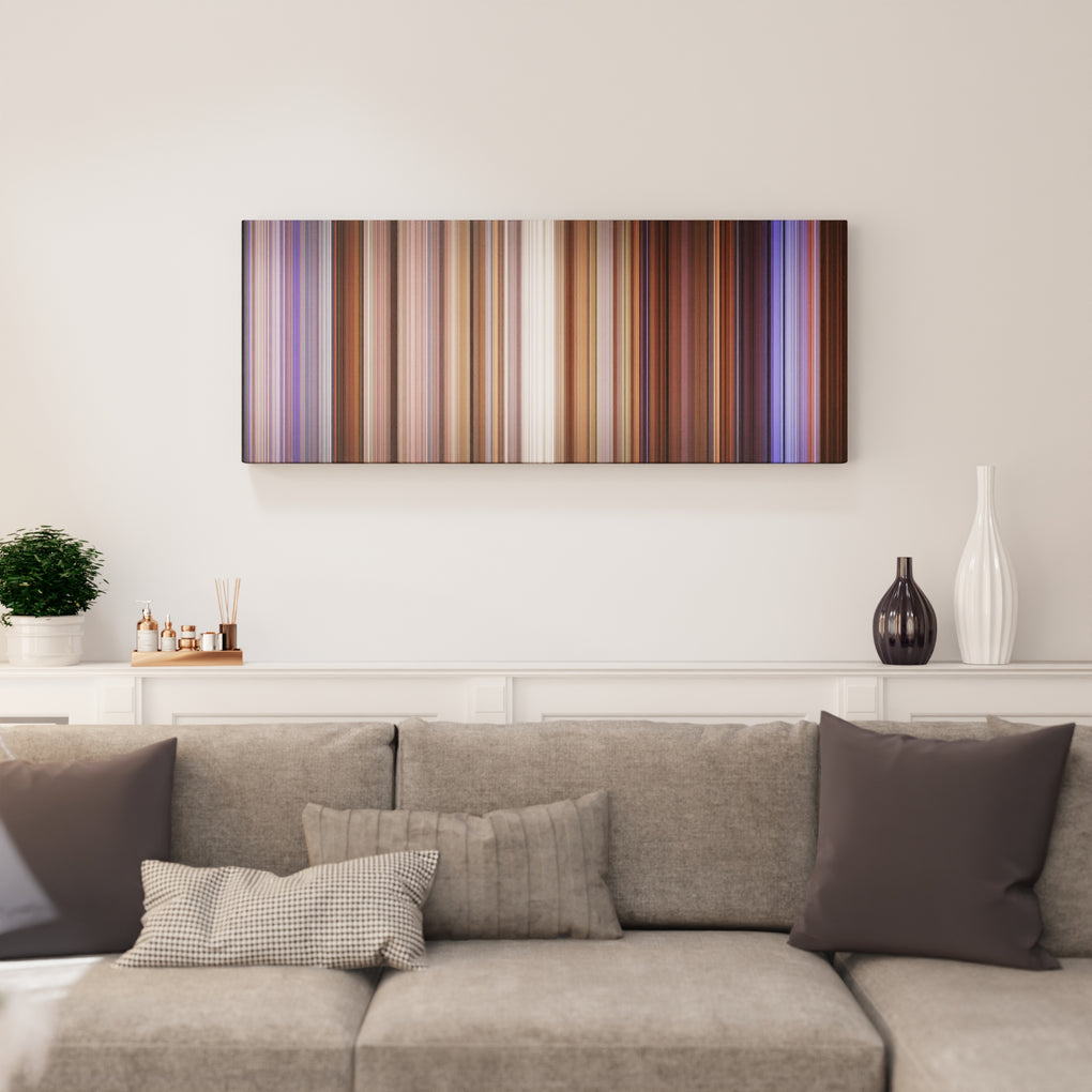 Presenting the ultimate treat for lovers of movies. For the first time ever, we’ve mapped out on canvas the entire DNA from start to finish. Every vertical stripe represents a scene with the color taken as the average of all the frames within that scene.