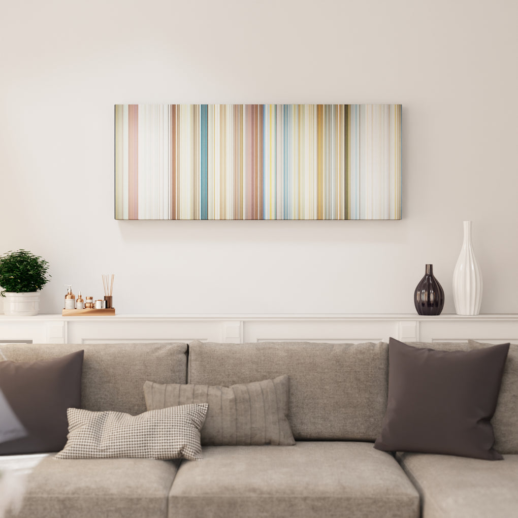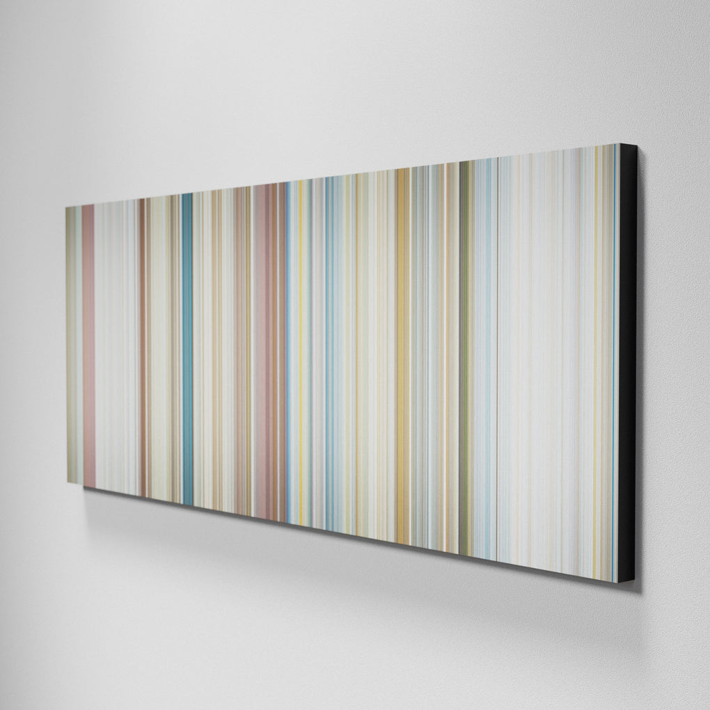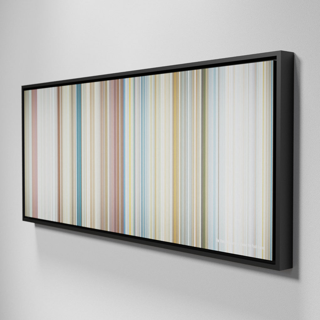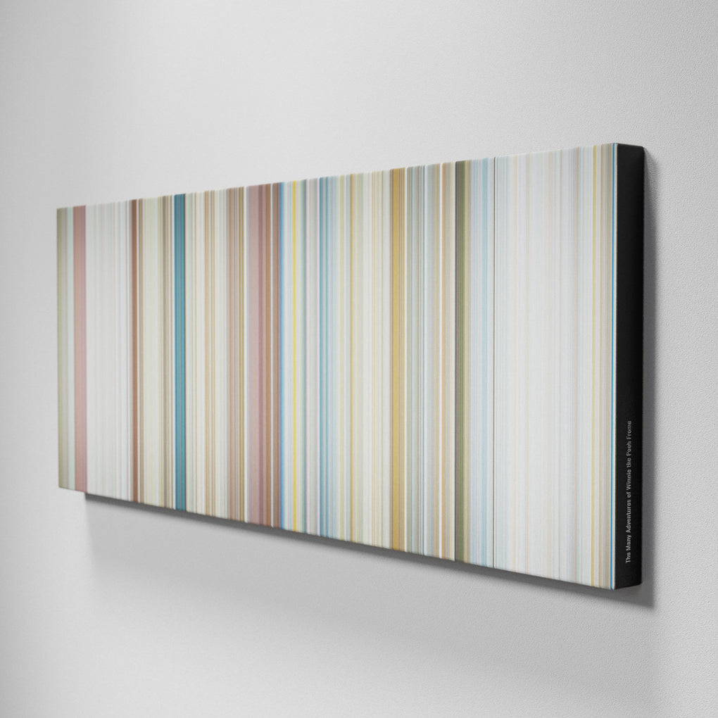 Presenting the ultimate treat for lovers of the movie The Many Adventures of Winnie the Pooh. For the first time ever, we've mapped out on canvas the entire DNA of the film from start to finish. Every vertical stripe represents a scene from The Many Adventures of Winnie the Pooh, with the color taken as the average of all the frames within that scene. When you take a step back, the overall impact is truly stunning! Cinema fans get a permanent reminder of this iconic film, which can be read again and again, just like a book. If you're looking for a truly unique piece of home decor packed with sentimental value, why not try Frome movie art?