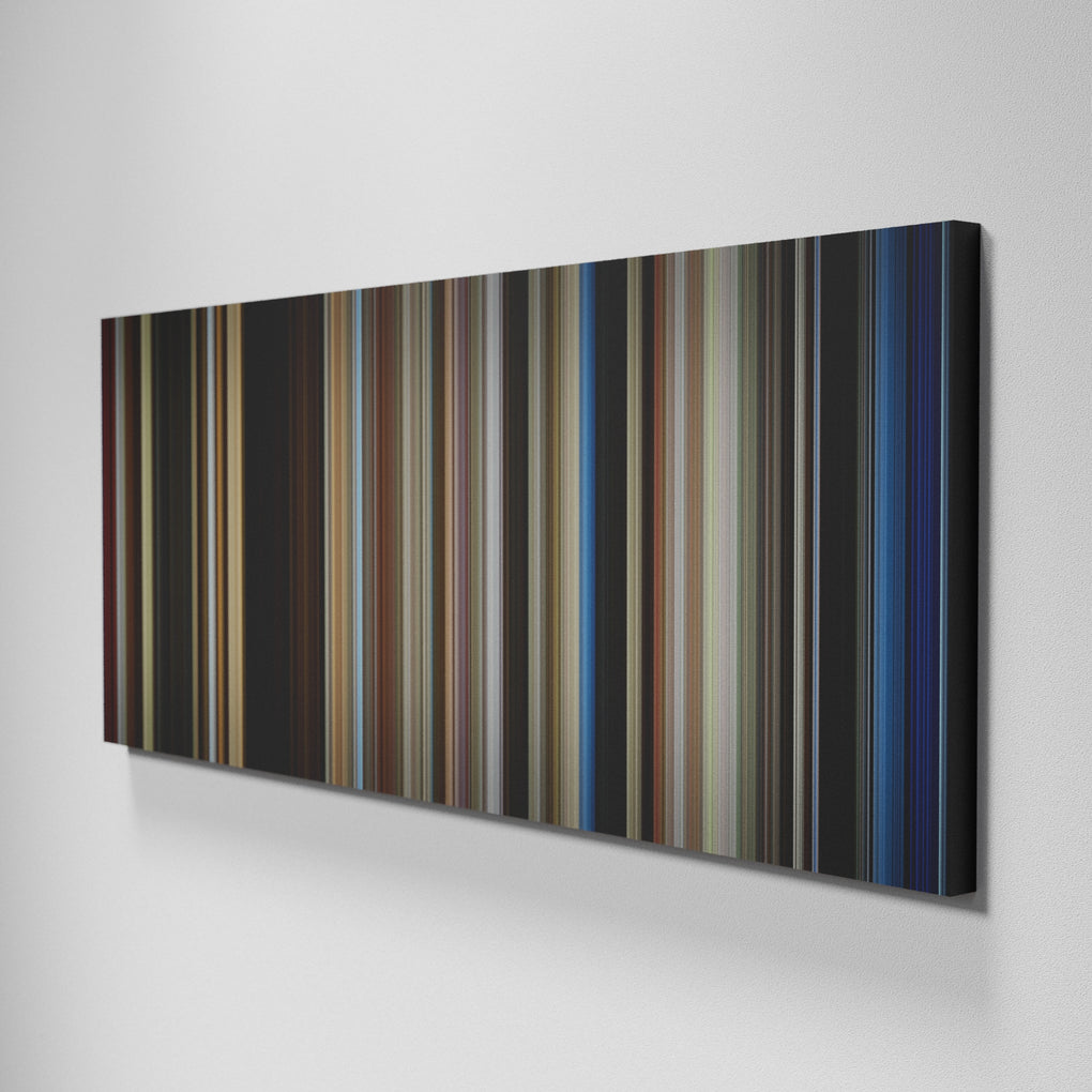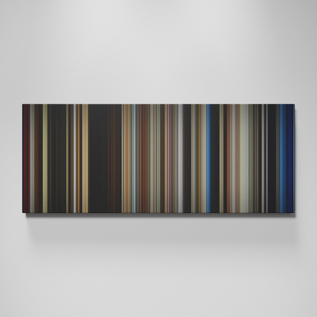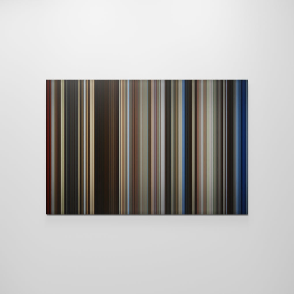 Presenting the ultimate treat for lovers of movies. For the first time ever, we’ve mapped out on canvas the entire DNA from start to finish. Every vertical stripe represents a scene with the color taken as the average of all the frames within that scene.