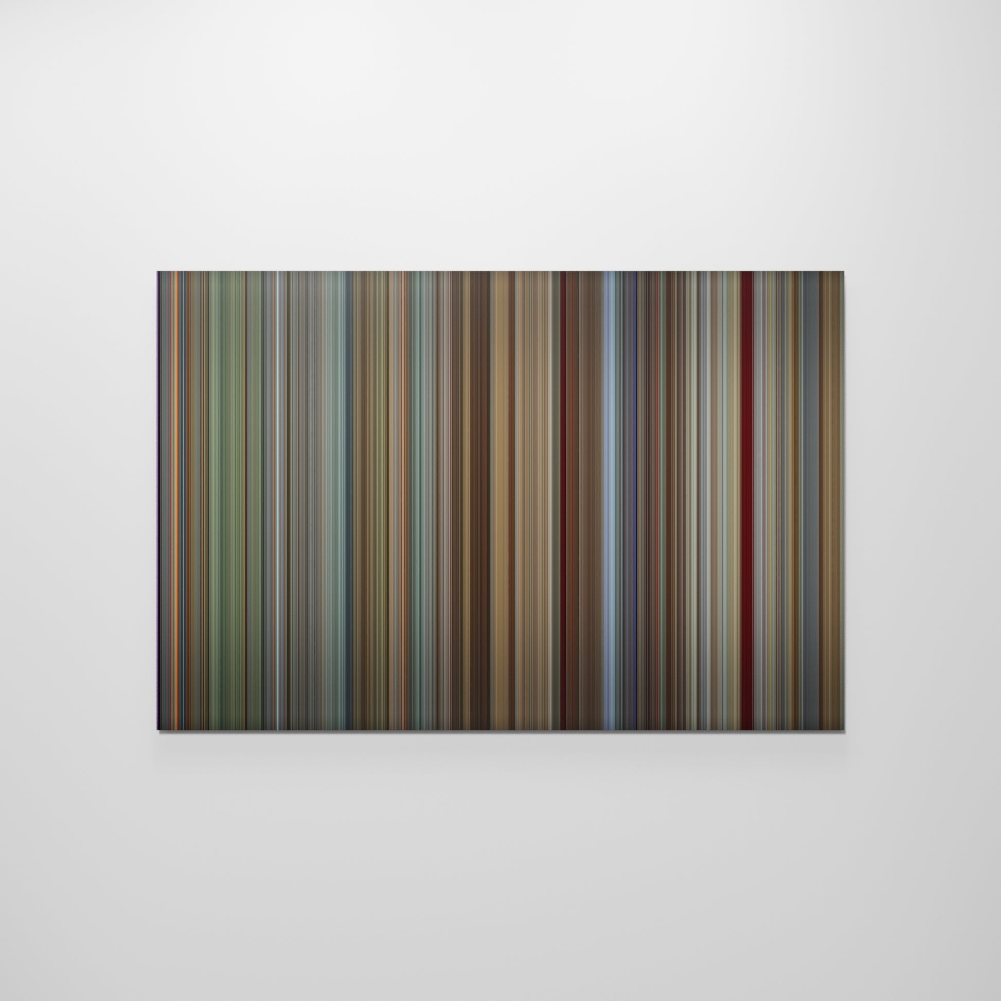Presenting the ultimate treat for lovers of movies. For the first time ever, we’ve mapped out on canvas the entire DNA from start to finish. Every vertical stripe represents a scene with the color taken as the average of all the frames within that scene.