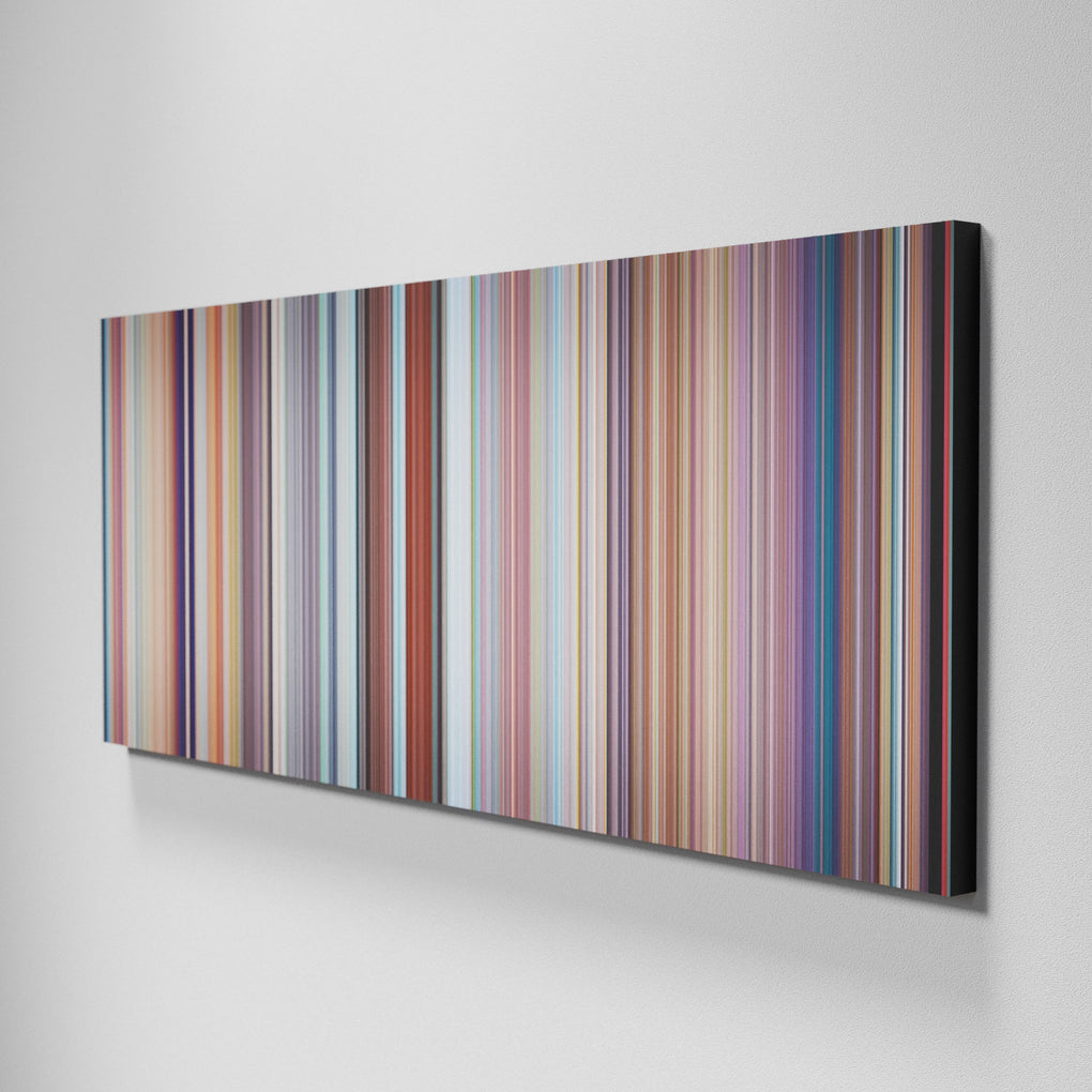 Presenting the ultimate treat for lovers of movies. For the first time ever, we’ve mapped out on canvas the entire DNA from start to finish. Every vertical stripe represents a scene with the color taken as the average of all the frames within that scene.