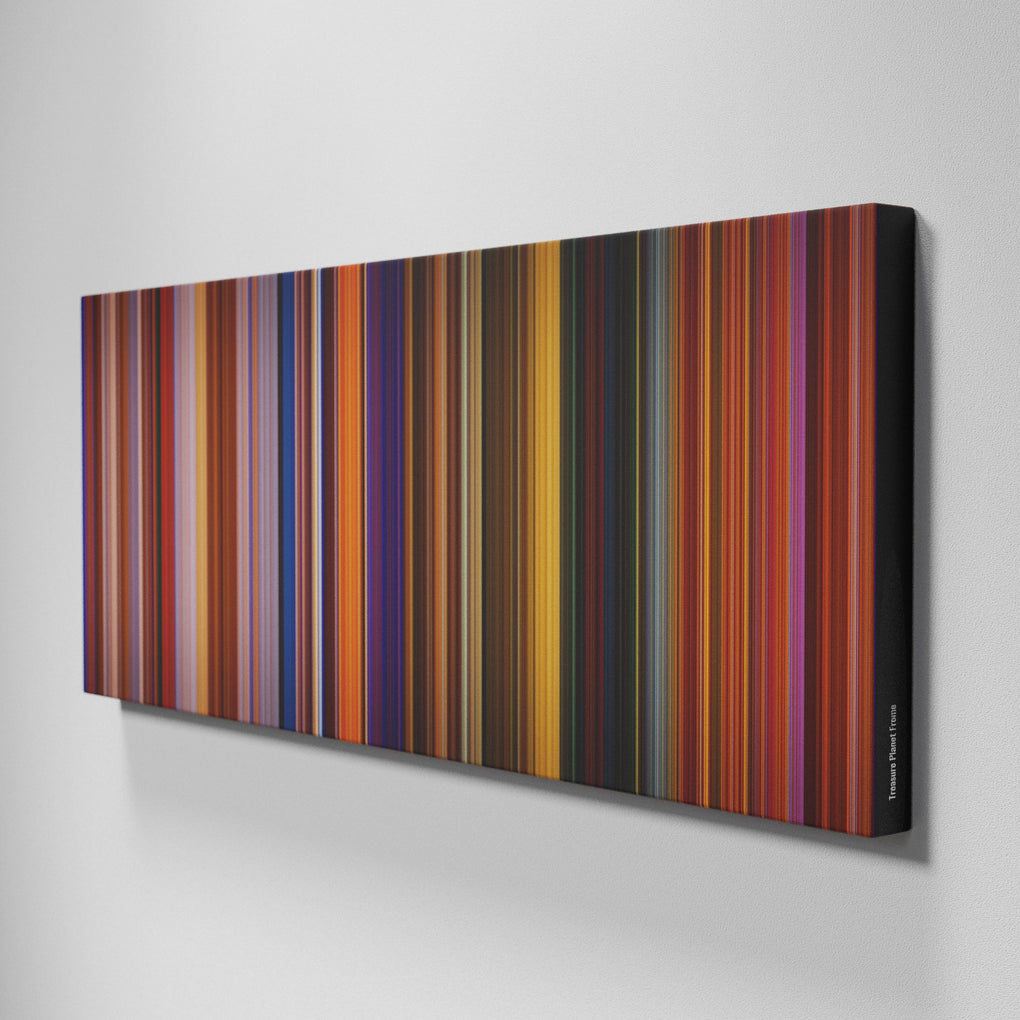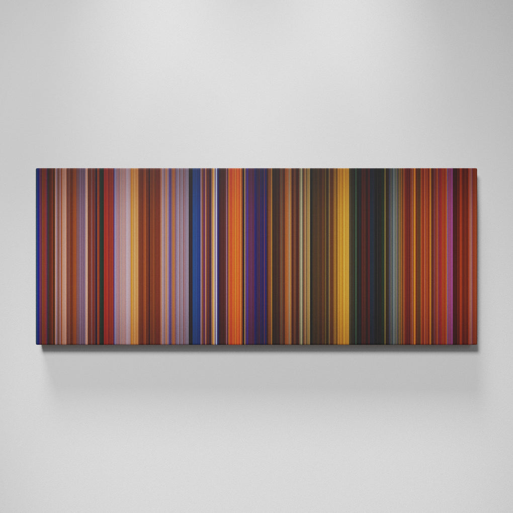 Presenting the ultimate treat for lovers of movies. For the first time ever, we’ve mapped out on canvas the entire DNA from start to finish. Every vertical stripe represents a scene with the color taken as the average of all the frames within that scene.