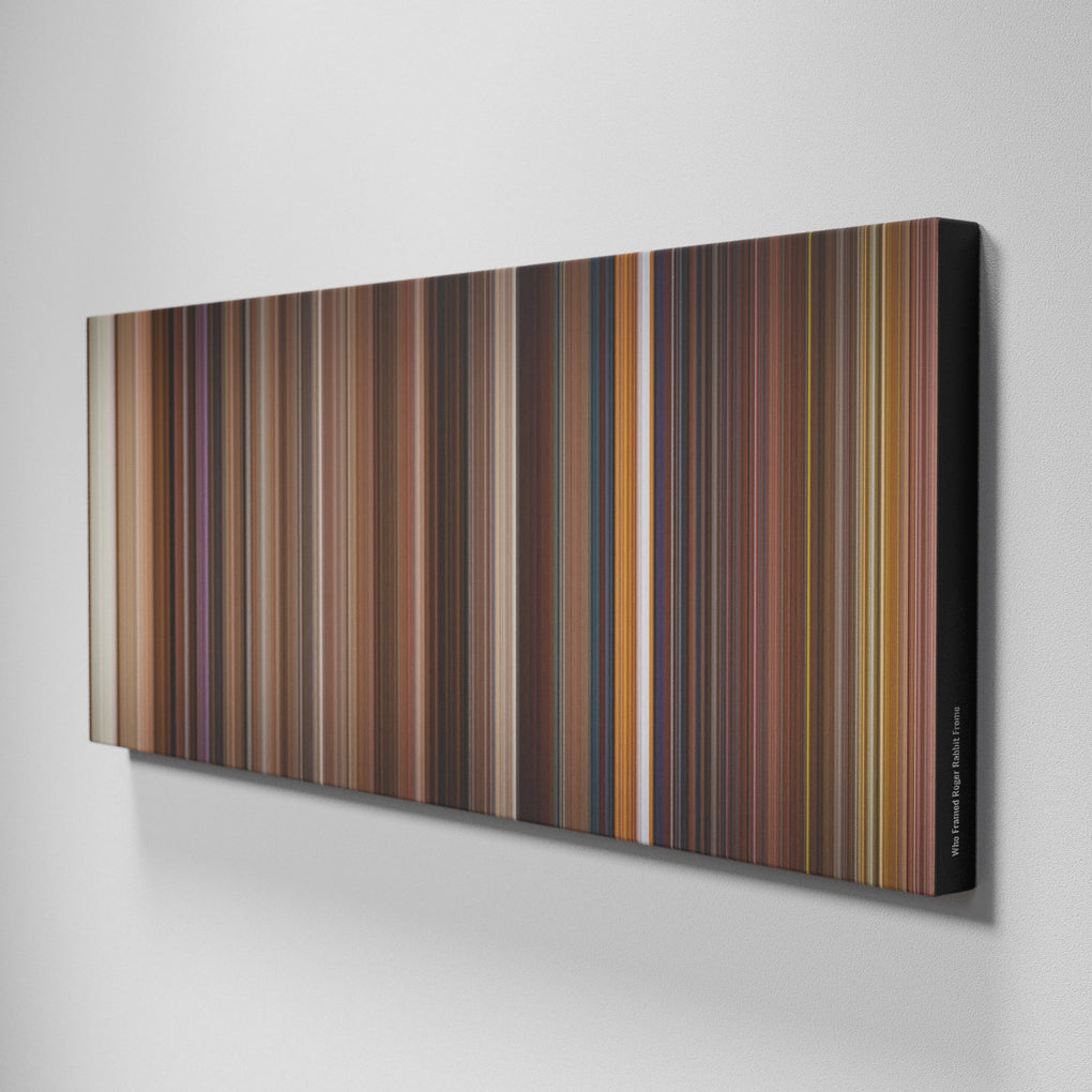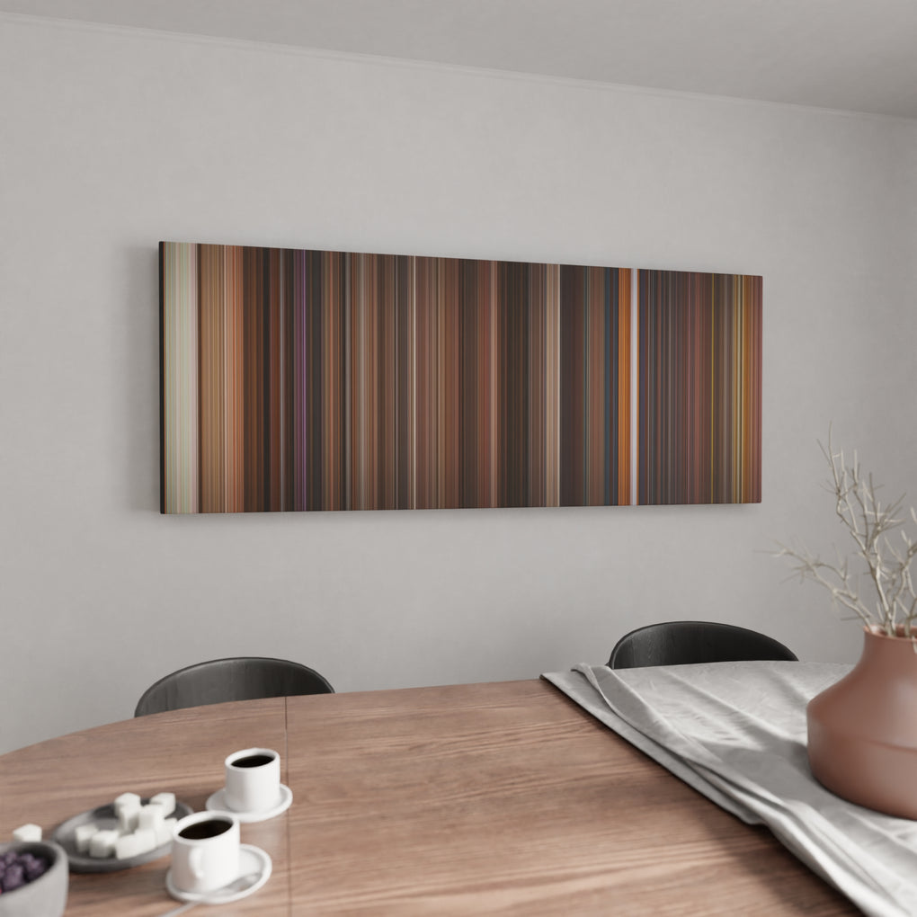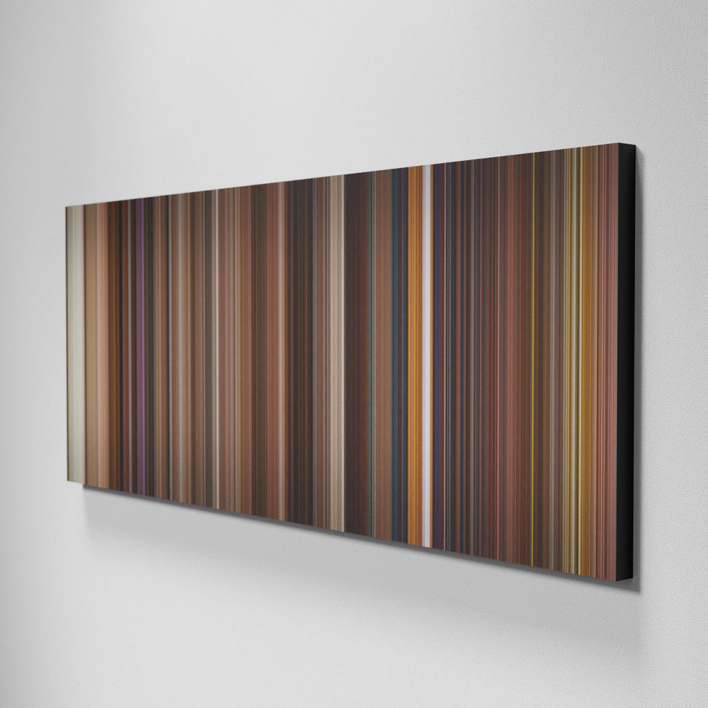 Presenting the ultimate treat for lovers of movies. For the first time ever, we’ve mapped out on canvas the entire DNA from start to finish. Every vertical stripe represents a scene with the color taken as the average of all the frames within that scene.