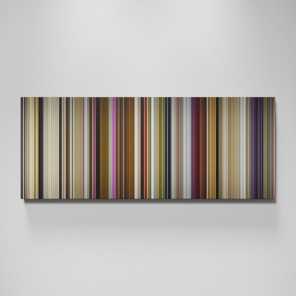 Presenting the ultimate treat for lovers of movies. For the first time ever, we’ve mapped out on canvas the entire DNA from start to finish. Every vertical stripe represents a scene with the color taken as the average of all the frames within that scene.